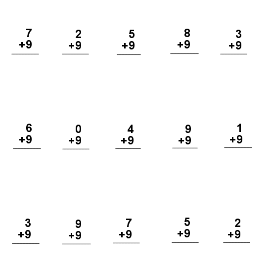 Math and Numbers - Addition Exercise - Nine Write the sum. Time yourself __________________ |